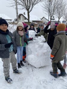 26. 1. 26: So viel Schnee hatten wir schon lange nicht mehr in Neckarsulm – da mussten die Pausen genutzt werden um zu Spielen und zu Bauen: